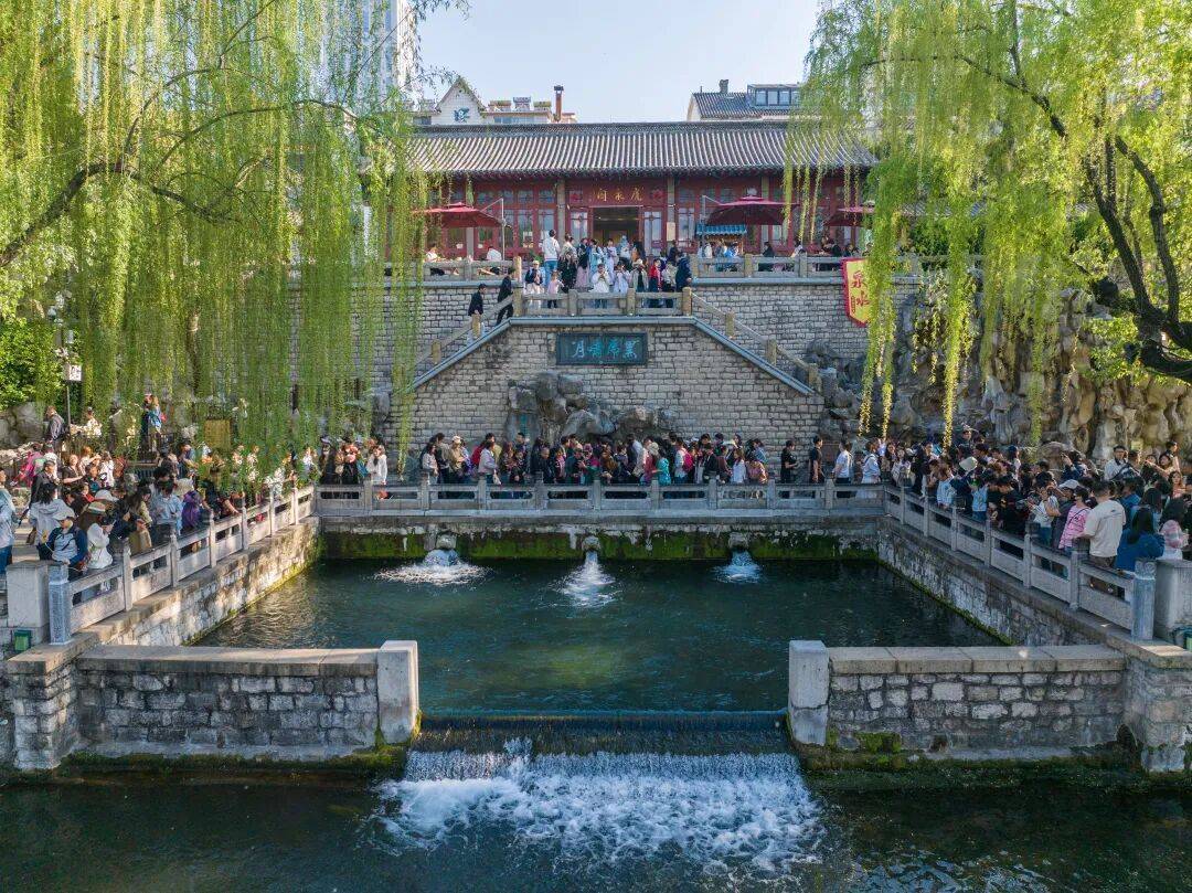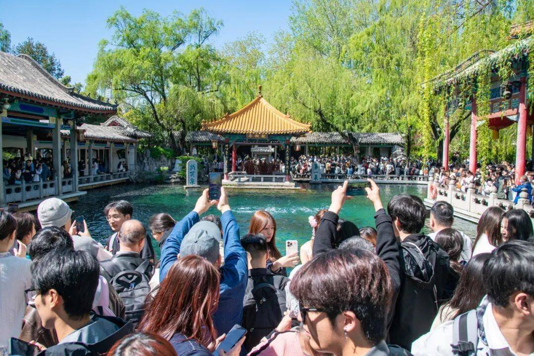 四肢济南的“流量担当”,趵突泉绿柳如烟,似锦似锦,眩惑稠密旅客踏春而来。三股水喷涌有劲,尽显春光如海;花朝荟市场会通泉畔好物与非遗手作,泉水沏茶逍遥诱东说念主茶香。旅客们在赏玩当然好意思景的同期,也能真切感受传统文化的独到韵味。