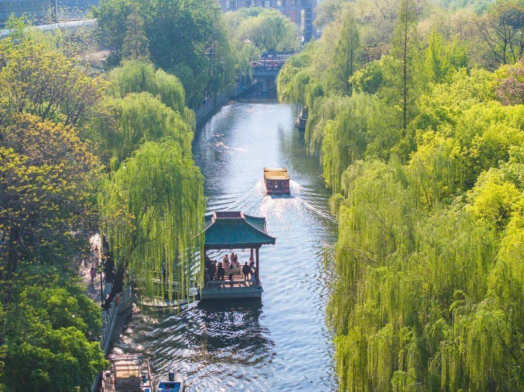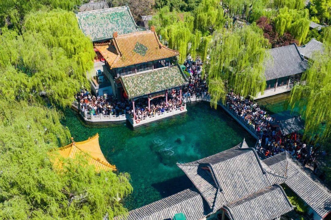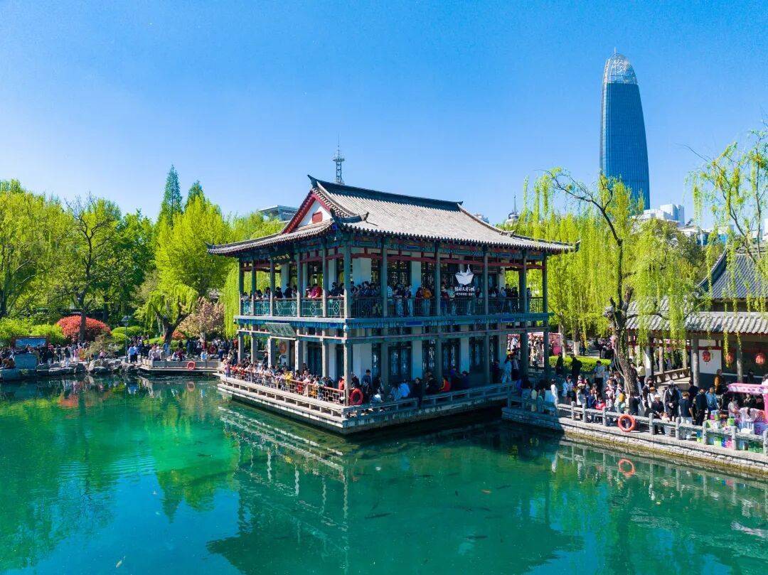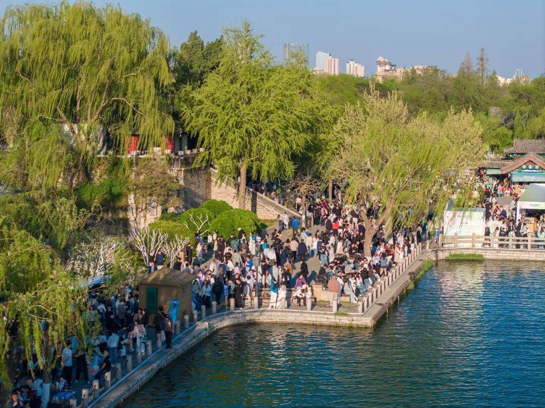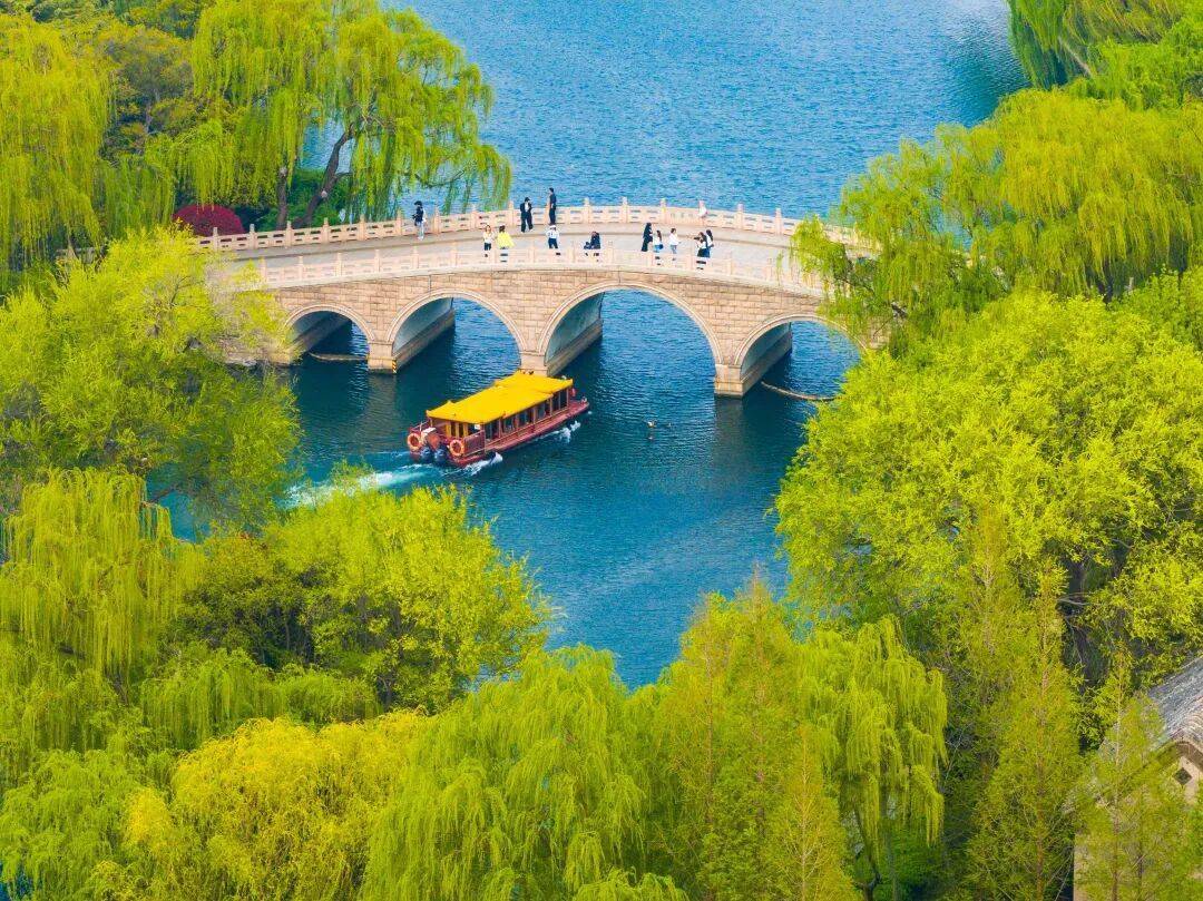 黑虎泉畔游东说念主如织,护城河两岸状态如画。大明湖天光云影,画舫凌波。