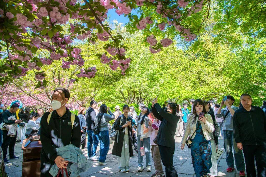 四肢春日打卡胜地,五龙潭公园一片吵杂表象。第二十三届樱花节正在火热进行中,樱花海棠缀满枝端,与清泉、古建意思意思横生,眩惑旅客藏身拍照。