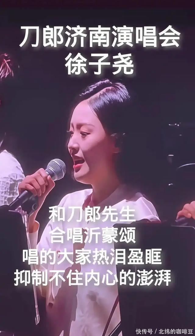 要说其她的光辉战绩,2024年刀郎在成都那场演唱会上,唱《西海情歌》的时候,因为心理欣喜而抽抽噎噎失声, 原来动作和声的徐子尧安静接唱,用澄清的嗓音稳住节拍,何况带动全场大齐唱。