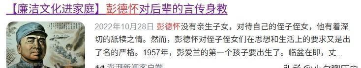 【方正文化进家庭】彭德怀对后辈的为人师表,滂湃新闻,2022年10月28日.