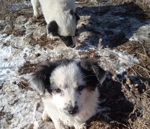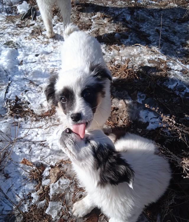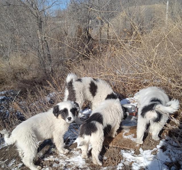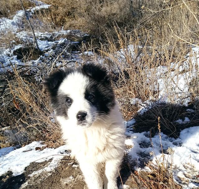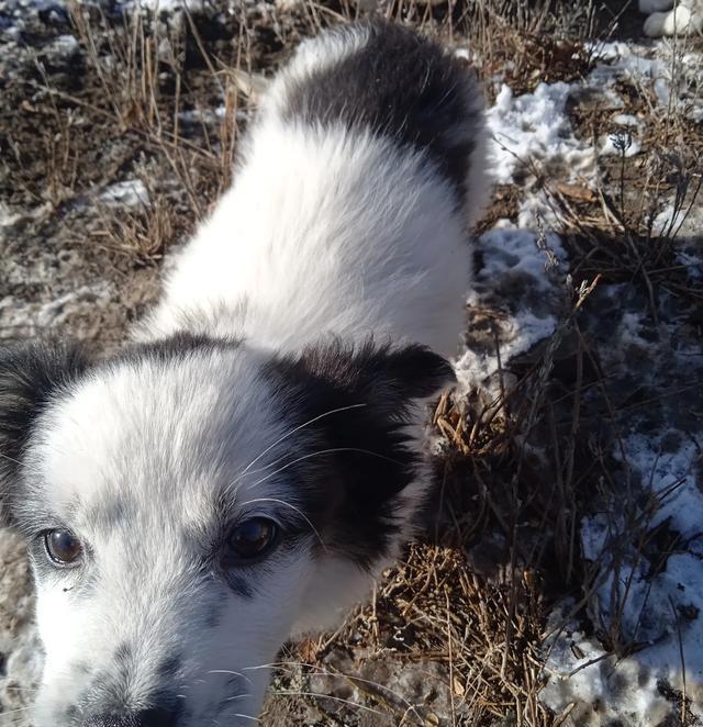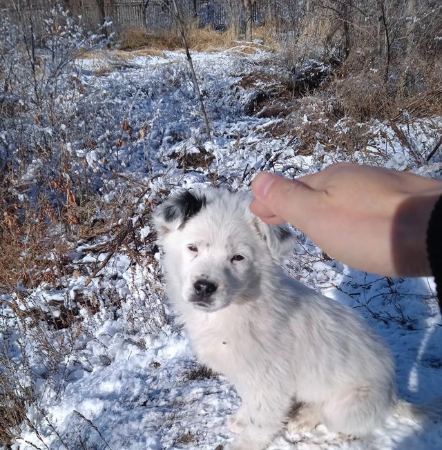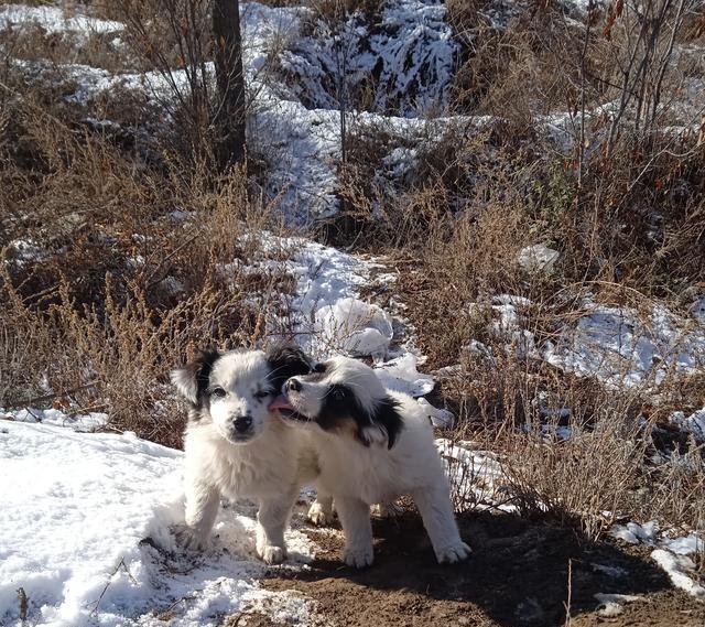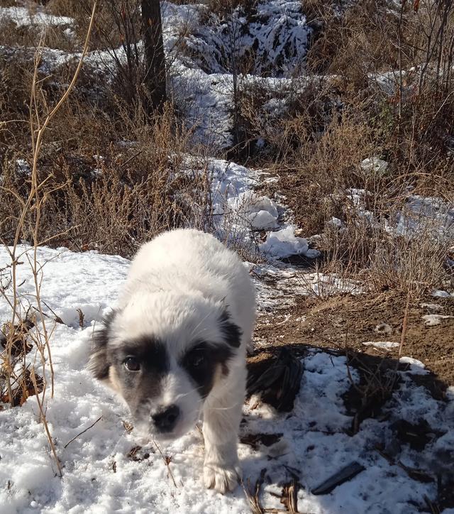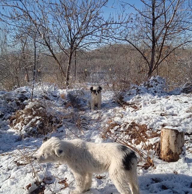 乌鲁木皆雪后天晴,我去望望山上的4条小狗,走到跟前没见着小狗,我呼叫了一声很快就有白色的小狗朝我跑来。第一个来到我跟前的是小白狗,它身上大部分都是白色的。