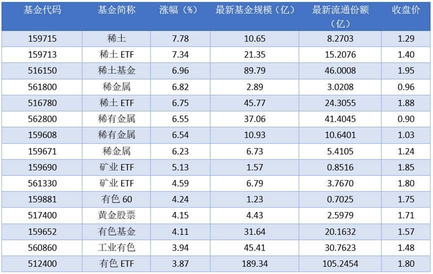 字据巨灵财经统计的数据,2025年10月13日场内ETF基金中稀土(159715)领涨,涨幅为7.78%,排行靠前的稀土ETF(159713)、稀土基金(516150)、蔼然金属 (561800),涨幅别离为7.34%、6.96%、6.82%。