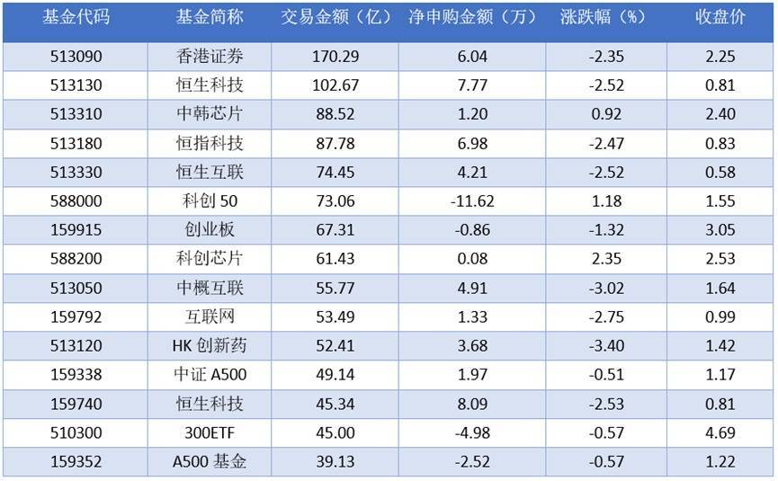 从成交金额上来看,2025年10月13日成交额最大的是香港证券(513090),走动金额170.29亿元。排行靠前的恒生科技(513130)、中韩芯片(513310)、恒指科技(513180),成交额别离为102.67亿元、88.52亿元、87.78亿元。